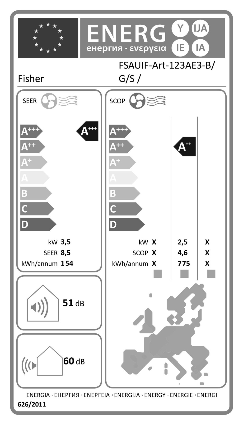 Sorozat Fisher ART sorozatHálózati áram (V/f/Hz) 230/1/50Javasolt biztosíték (A)C 16ATömeg (beltéri/kültéri) (kg)11,3 / 26,4Névleges fűtőteljesítmény a tervezési hőmérsékleten (-10°C) (kW)2,049Szükséges rásegítőfűtés a tervezési hőmérsékleten (-10°C) (kW)0.451Bivalens hőmérséklet (°C)-7Üzemeltetési határokKülső hőm. Hűtés (°C)-15 ~ 50Külső hőm. Fűtés (°C)-25 ~ 24Belső hőm. Hűtés (°C)16 - 32Belső hőm. Fűtés (°C)0 - 30Zajszint (db(A))max./köz/min.Beltéri hangnyomásszint dB(A) (min./köz./max.) v. (max.)19/21,5/32,5/40Beltéri hangteljesítményszint dB(A) (max.)53Kültéri hangteljesítményszint dB(A)62CsövezésMax. össz. csőhossz (m)25Max. szintkülönbség (m)10Csőméret (mm)6.35/9.53MéretBeltéri (Szél.xMag.xMély.) (mm)920x321x211Kültéri (Szél.xMag.xMély.) (mm)765x555x303Talpméret (mm)452x286