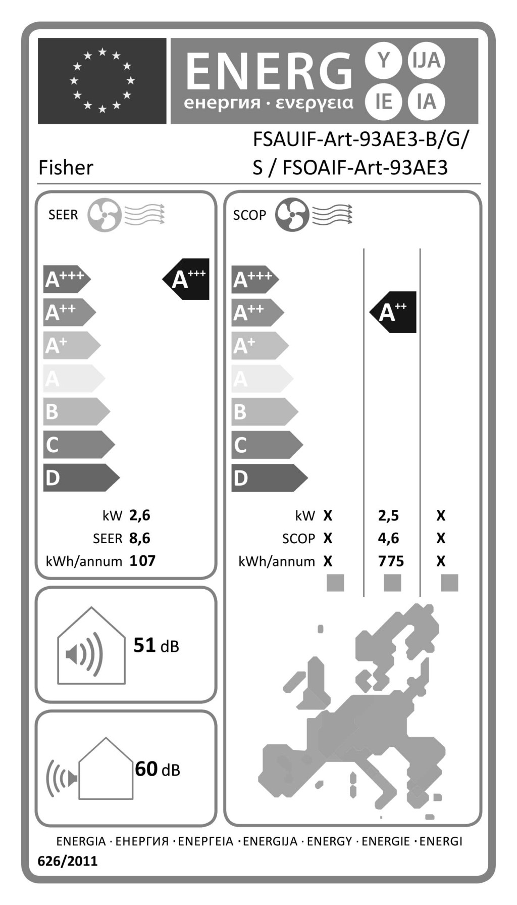 Energiaosztály: A+++ hűtés / A++ fűtés