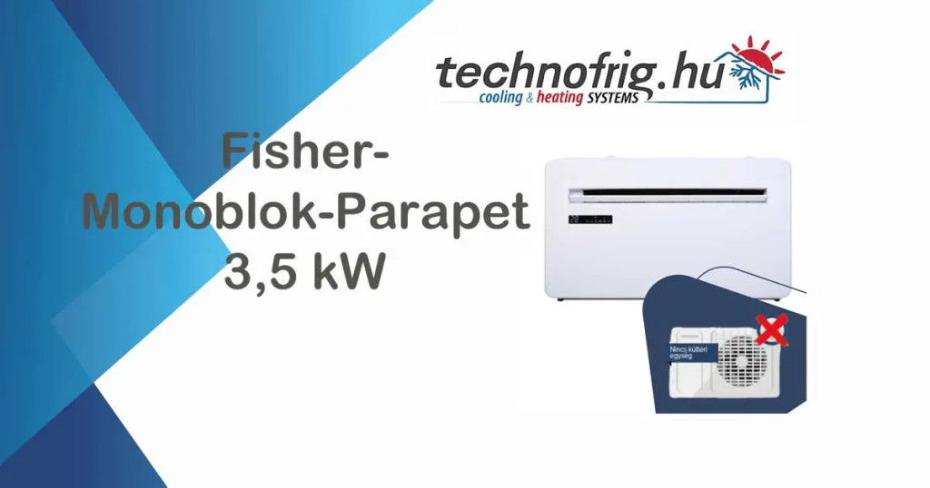 Fisher FCFI-120GE4-R 3,5 kW teljesítményű monoblokk parapet klímaberendezés, R32 hűtőközeggel, energiatakarékos és egyszerűen telepíthető. 3 év garancia