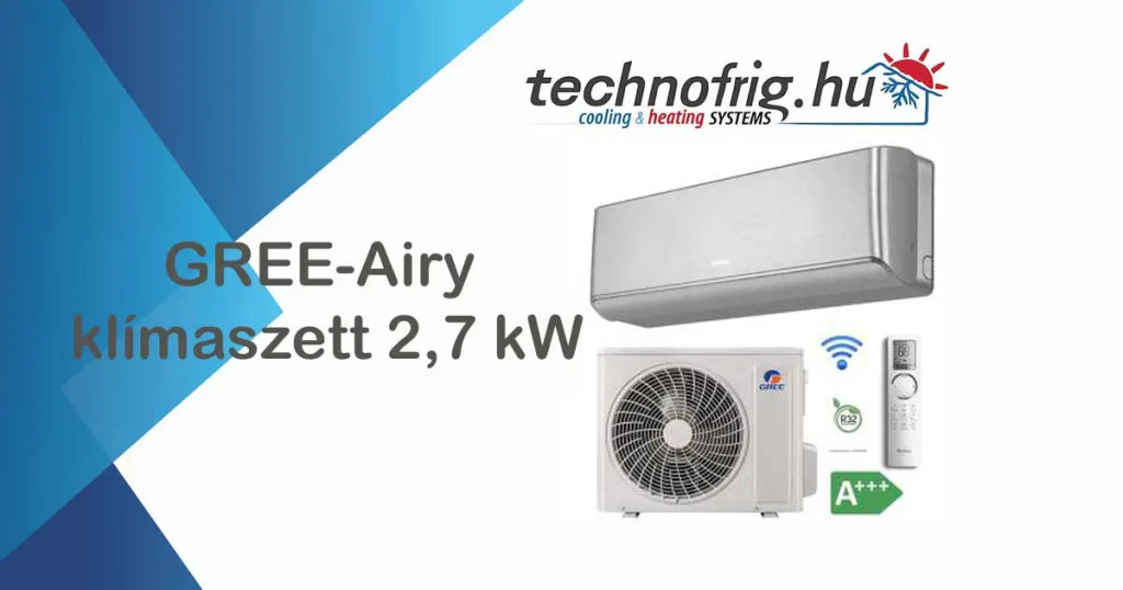 A GREE AIRY GWH09AVCXB-K6DNA1B 2,7 kW inverteres klíma szett modern dizájnnal, energiatakarékos működéssel és R32 hűtőközeggel.Alap garancia: 3 év, regisztrációval 10 évre bővíthető.