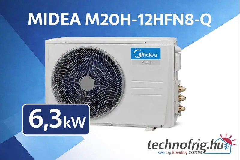 A MIDEA M3OG-21HFN8-Q (B) multisplit kültéri egység kb. 6,3 kW hűtési teljesítménnyel, maximum 3 db beltéri egység kiszolgálására alkalmas. Tartalmaz csepptálca fűtés funkciót, amely biztosítja a megbízható működést hidegebb körülmények között is.
